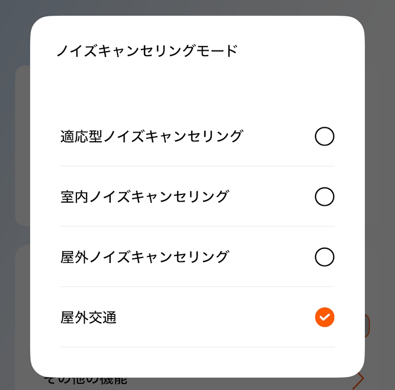適応型ノイズキャンセリングや室内ノイズキャンリングなど、状況に応じて変更できます。