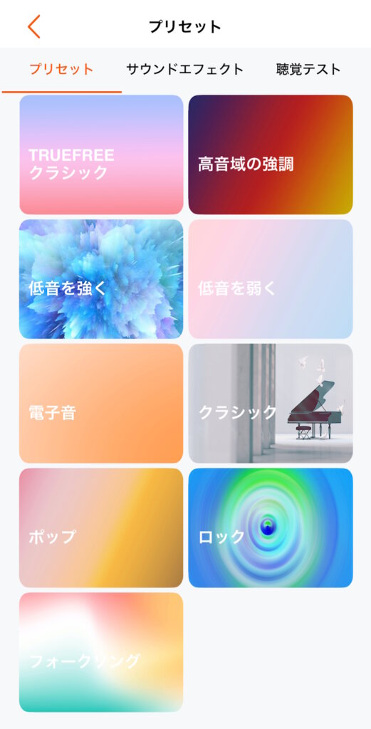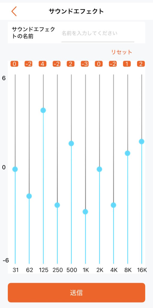 サウンドエフェクトではプリセットから選択する他に、カスタムで自分好みの音質に調整することができます。