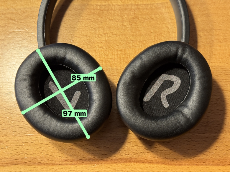 ヘッドホンユニットの縦幅は97 mm、横幅は85 mmです。