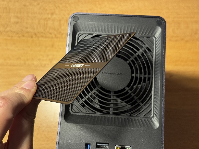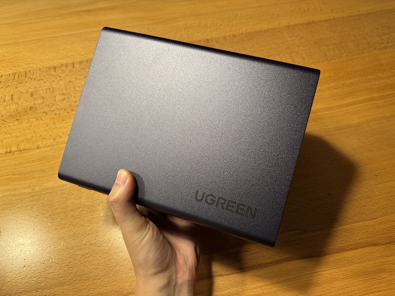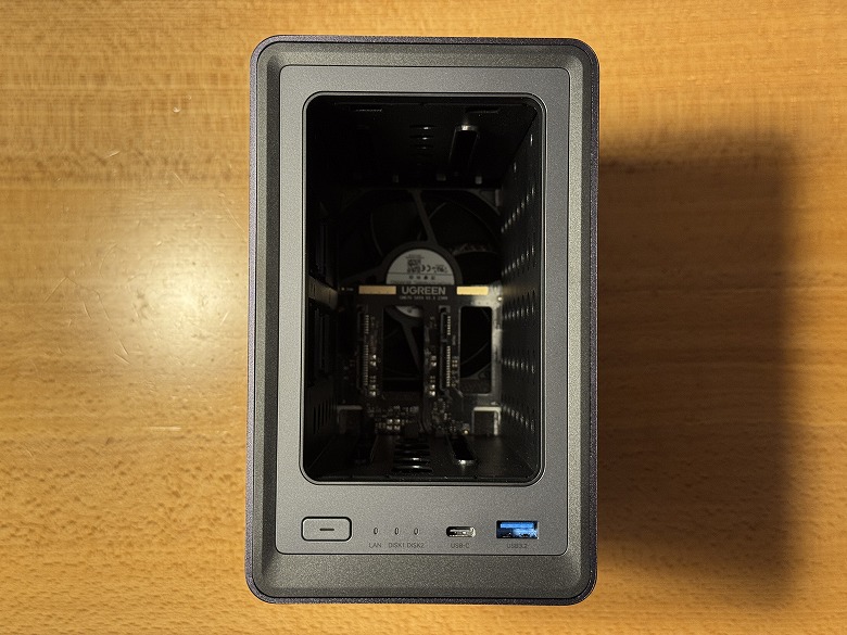 「UGREEN NASync DXP2800」の外観は、ブラックメタリックでクールなデザインです。