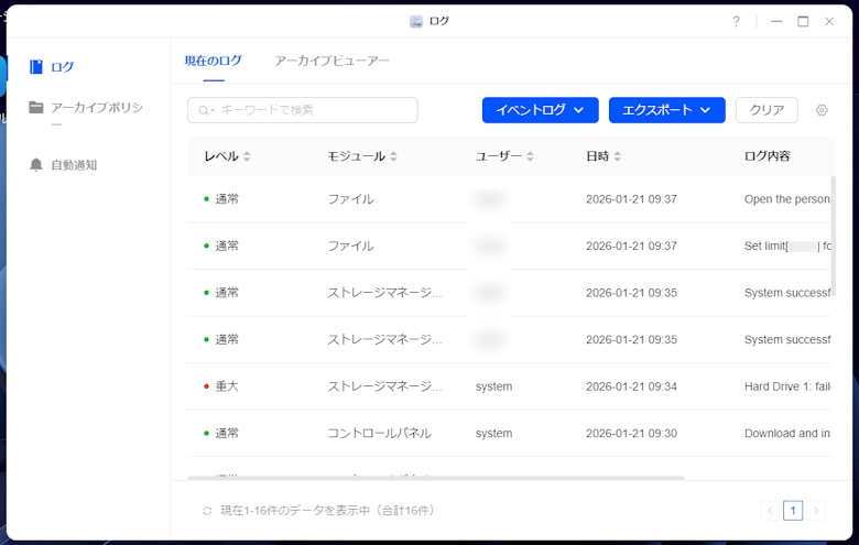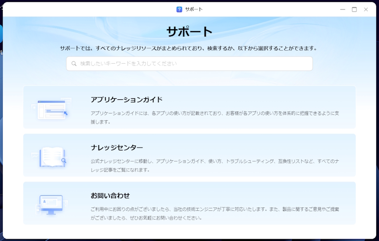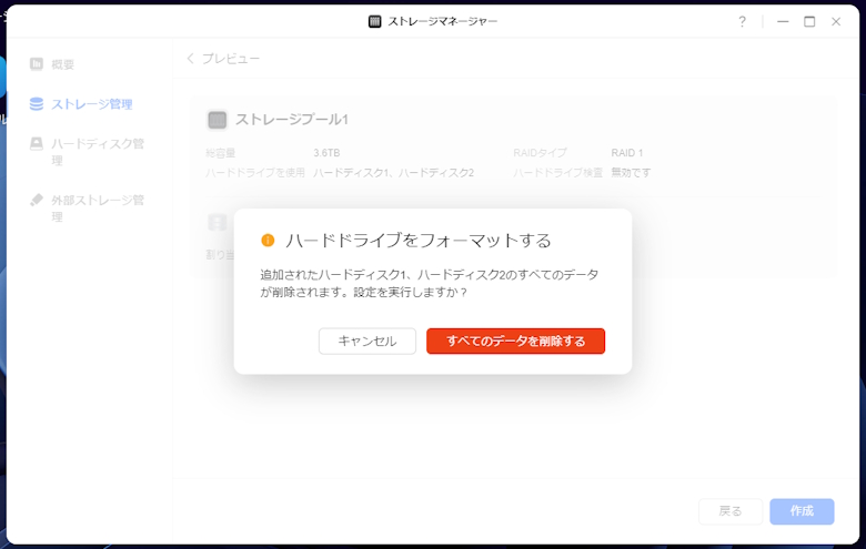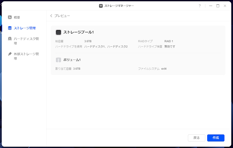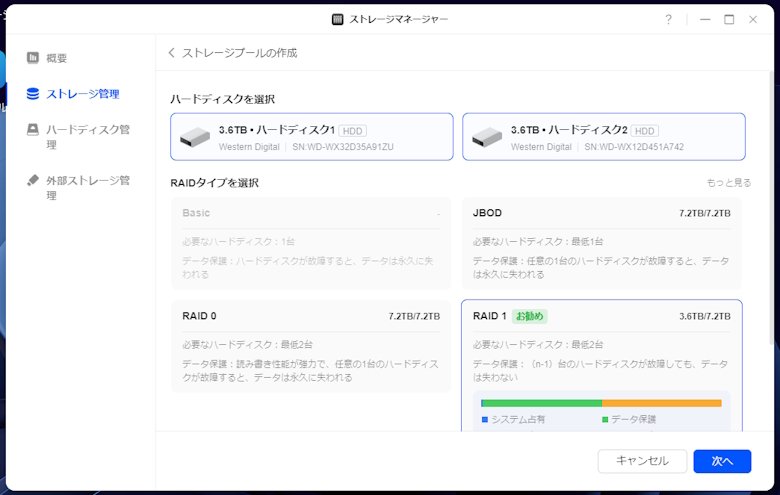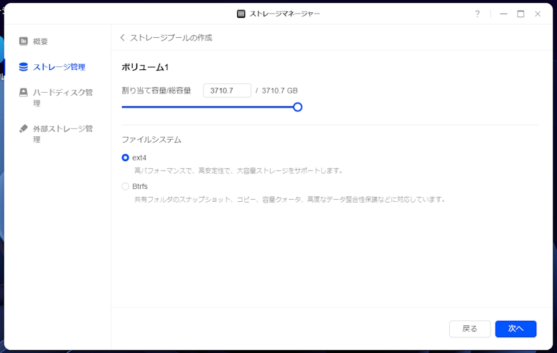 管理画面は直感的で、NASに詳しくなくても迷いにくい構成です。