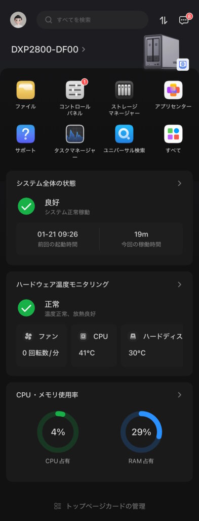 「UGREEN NASync DXP2800」を使い始めてまず感じたのは、全体の動作に余裕があるという点です。