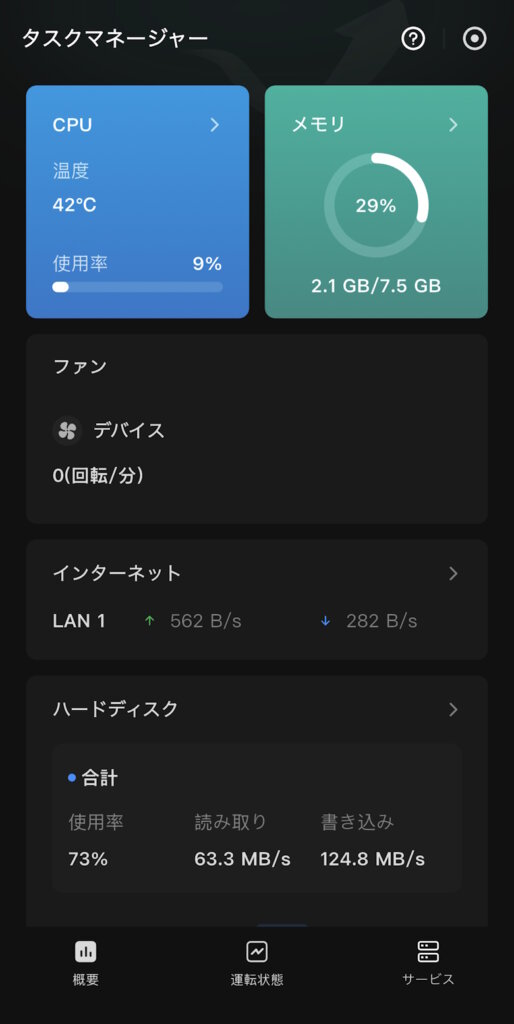 「まだ余力が残っている」と感じられる点は、長く使うNASとして非常に安心感があります。