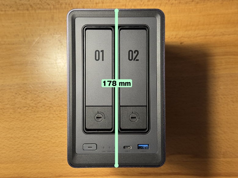 「UGREEN NASync DXP2800」のサイズは232 × 110 mmです。
