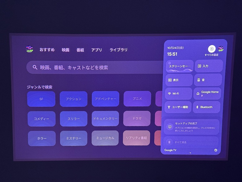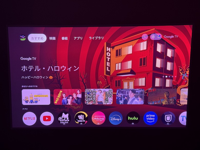 「XGIMI HORIZON 20 Pro」はGoogle TVが搭載されており、初期設定を済ますとすぐに起動します。